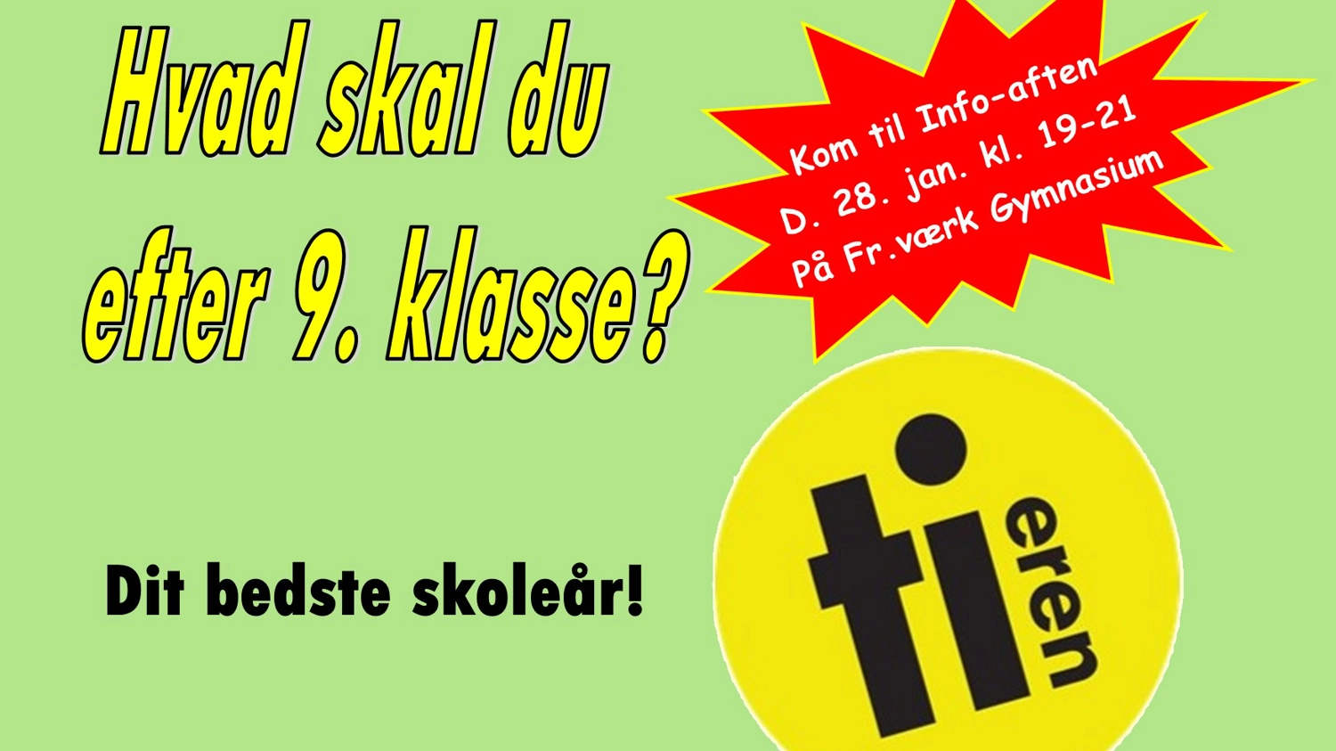 Vi glæder os til at se dig og dine forældre og sætte ord på, hvad Ti'eren kan for dig og hvorfor vi tror det kan blive dit bedste skoleår nogensinde.