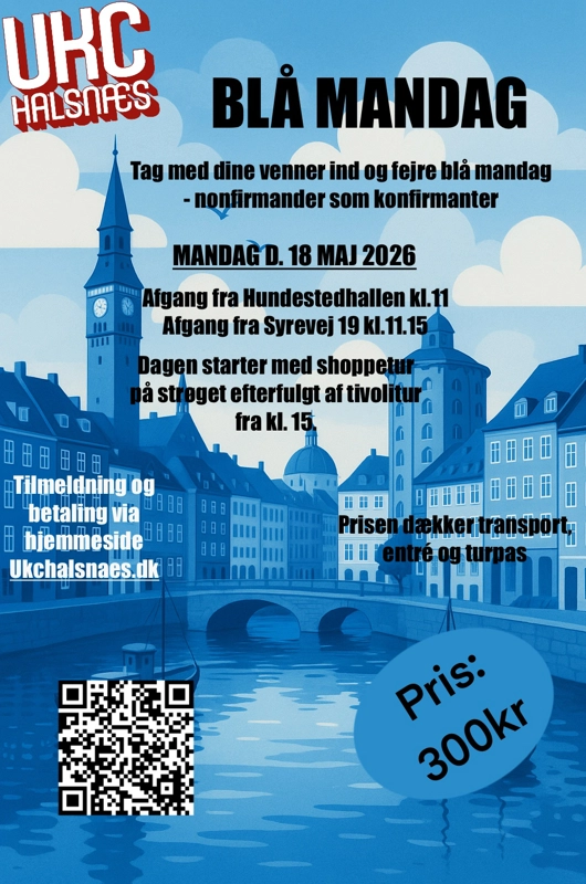 Tag med dine venner ind og fejr den årlige blå mandag sammen med UKC Klubben. - nonfirmander som konfirmander.